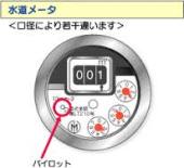 1. 家中(屋外の散水栓なども含む)の蛇口を全部閉めて、水道メーターのパイロットをしばらく見ていてください。